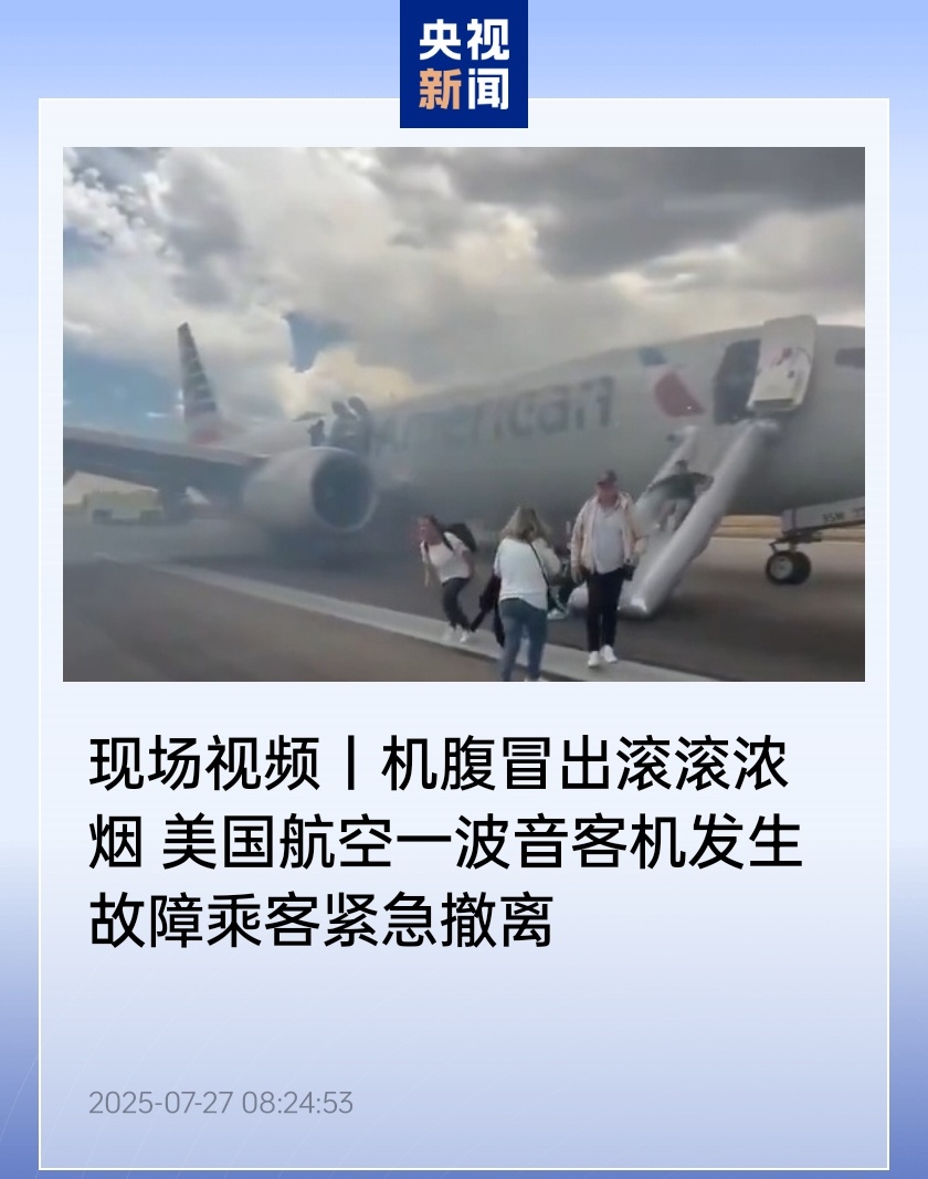 现场画面显示,客机底部冒出滚滚浓烟,乘客通过紧急滑梯撤离。美国联邦航空局表示,可能是起落架问题造成的起火。
