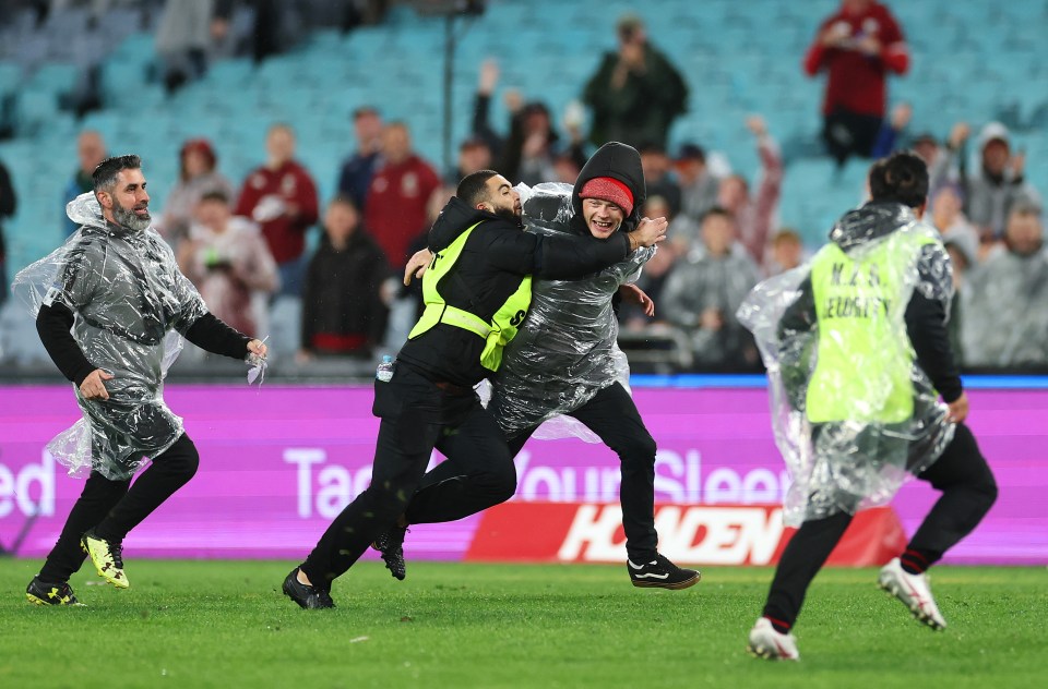 Unsurprisingly all three were taken down by security, making it a rather expensive decision given pitch invasions can land a £2,600 fine in Australia.