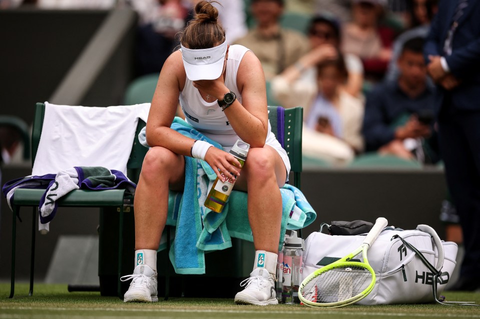 Reigning Wimbledon women’s singles champion Barbora Krejcikova needed her blood pressure measured mid-match against Emma Navarro.