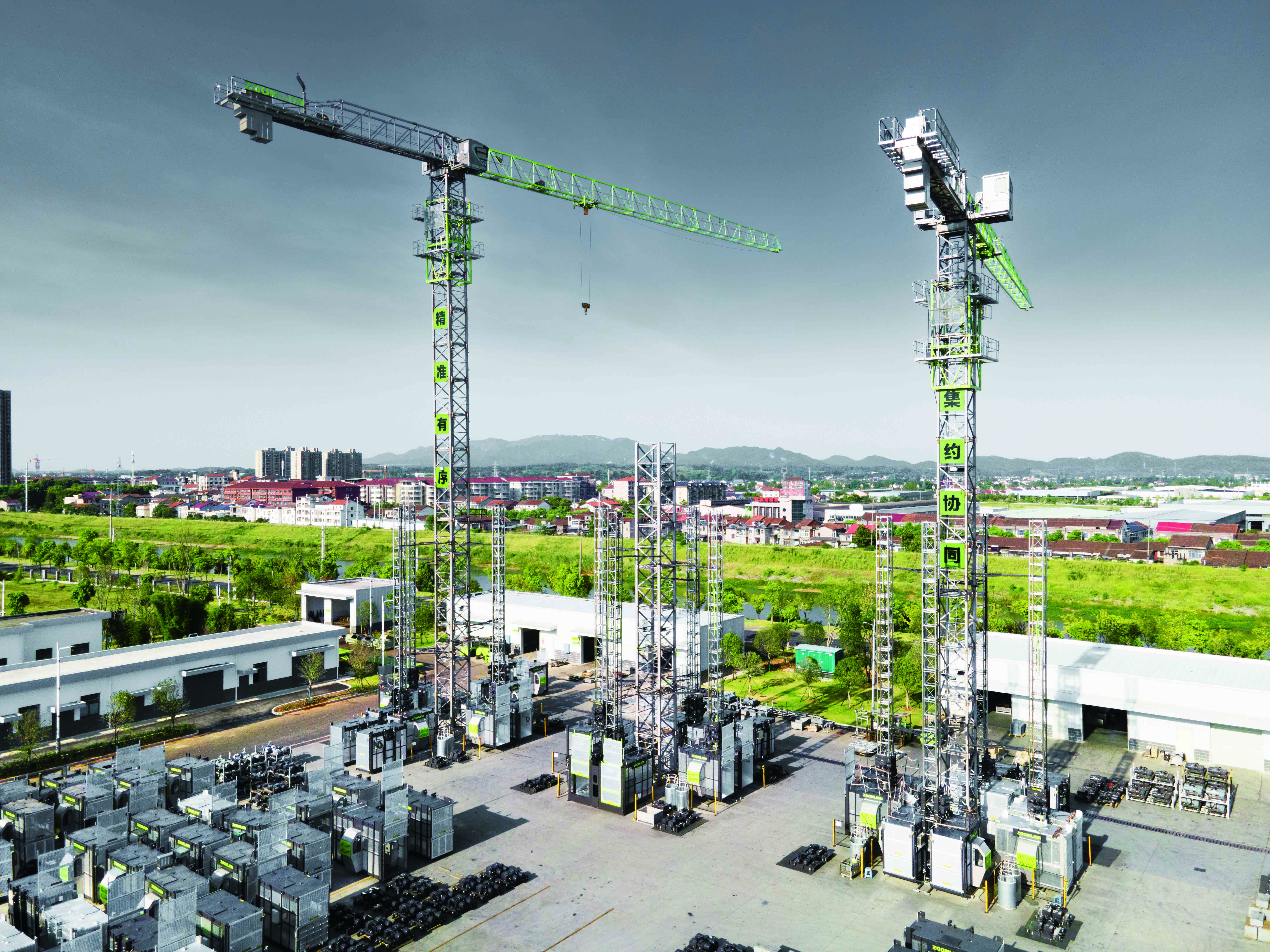 这座园区可以年产塔机约2万台、升降机约1万台,年产值超200亿元。平均每18分钟,一台塔机即可面世。