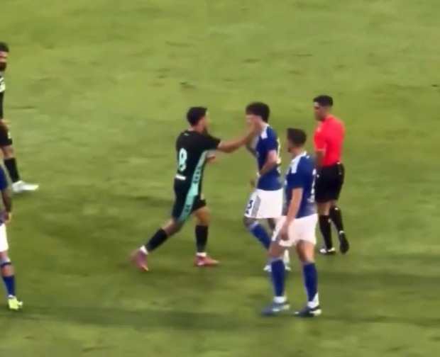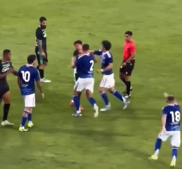The two players had to be pulled apart by their respective teammates as the situation descended into mayhem.