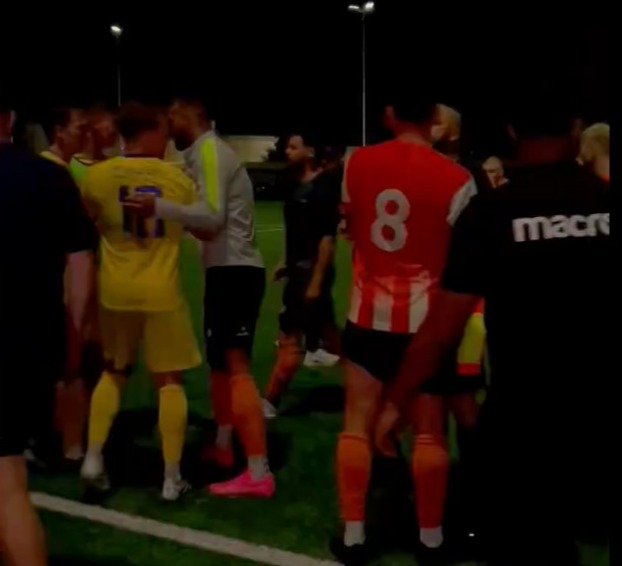 “And as some of the Eastbourne Town players moved away to try and sort of avoid being involved in the brawl, they knocked the referee over.