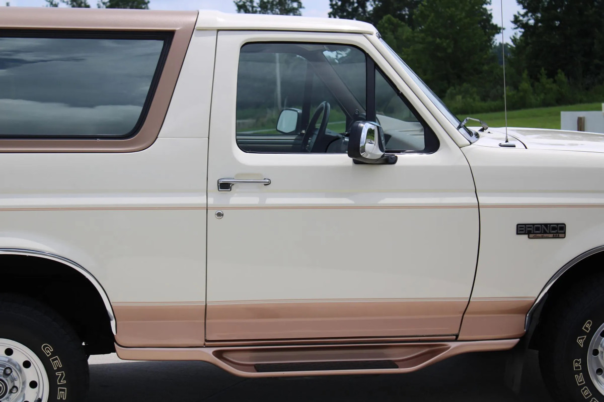 The Eddie Bauer-trimmed SUV sold for $85,500 on Bring a Trailer earlier this week, more than three times its original $27,810 MSRP. That’s a wild price for a late fifth-generation Bronco, but this rig shows just 13,000 miles and looks new, inside and out. It sports a two-tone paint job and 15-inch aluminum wheels with General Grabber AP tires. Perhaps most important is the Bronco’s condition underneath, where it shows zero rust and corrosion prevention treatment.