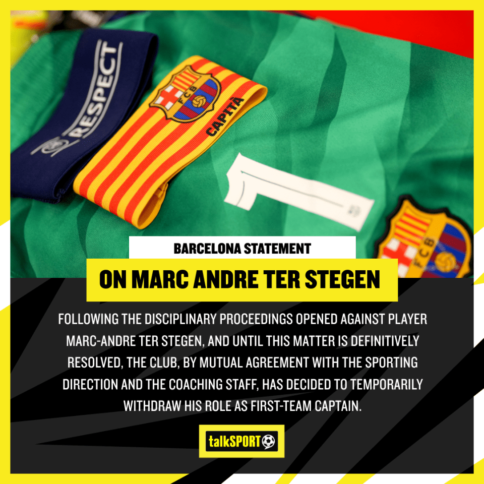 Marc-Andre ter Stegen has been reinstated as Barcelona’s captain – hours after putting out a statement following his shock axing.