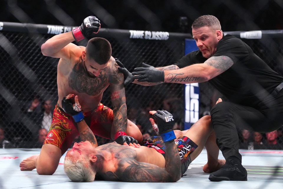 He picked up the vacant belt through a vicious first-round knockout of Charles Oliveira in the Las Vegas main event.